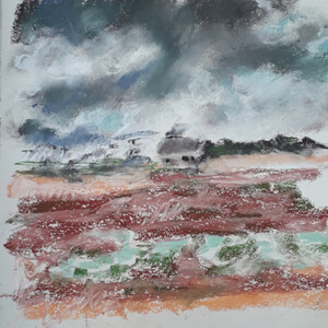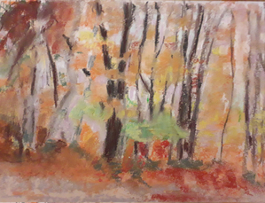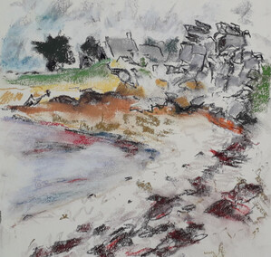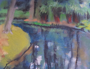 Voor buitentekeningen maak ik meestal gebruik van pastel. Dit materiaal geeft mij veel vrijheid.